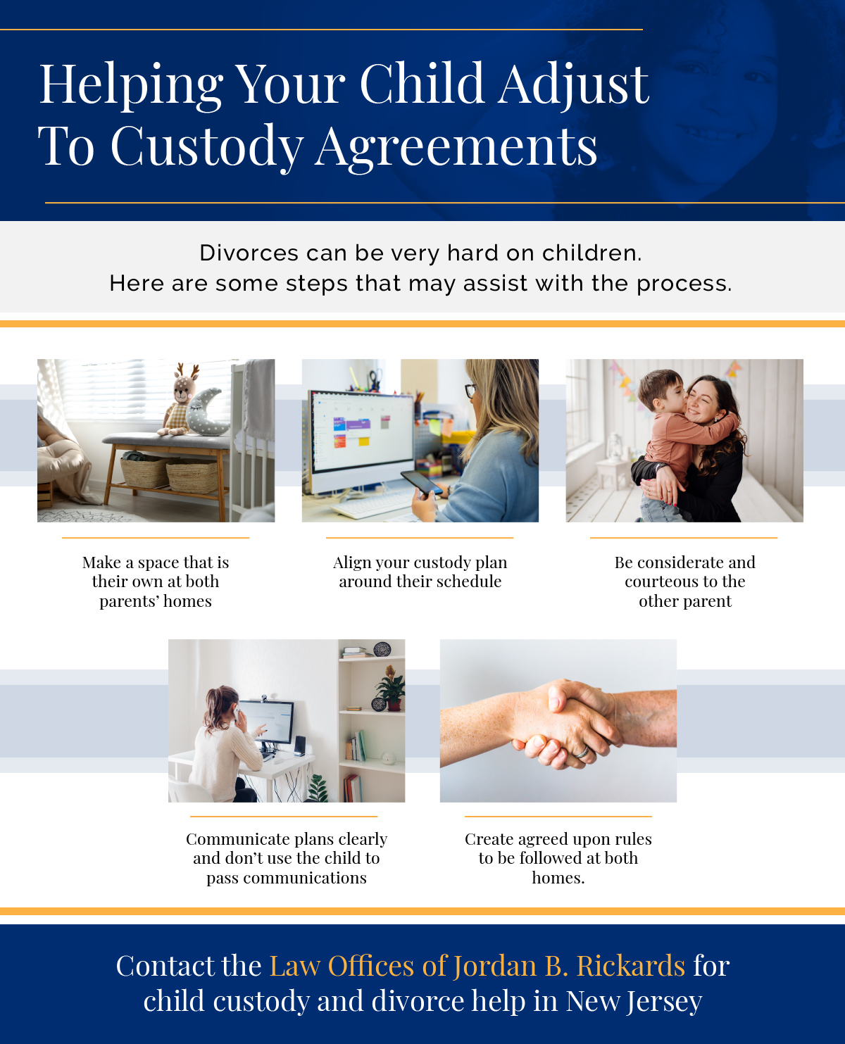 While the transition will undoubtedly be difficult and strange at first, you and your children can work through this time and find a new routine that works for everyone. When you need help with child custody or a divorce in New Jersey, reach out to the Law Office of Jordan B. Rickards!